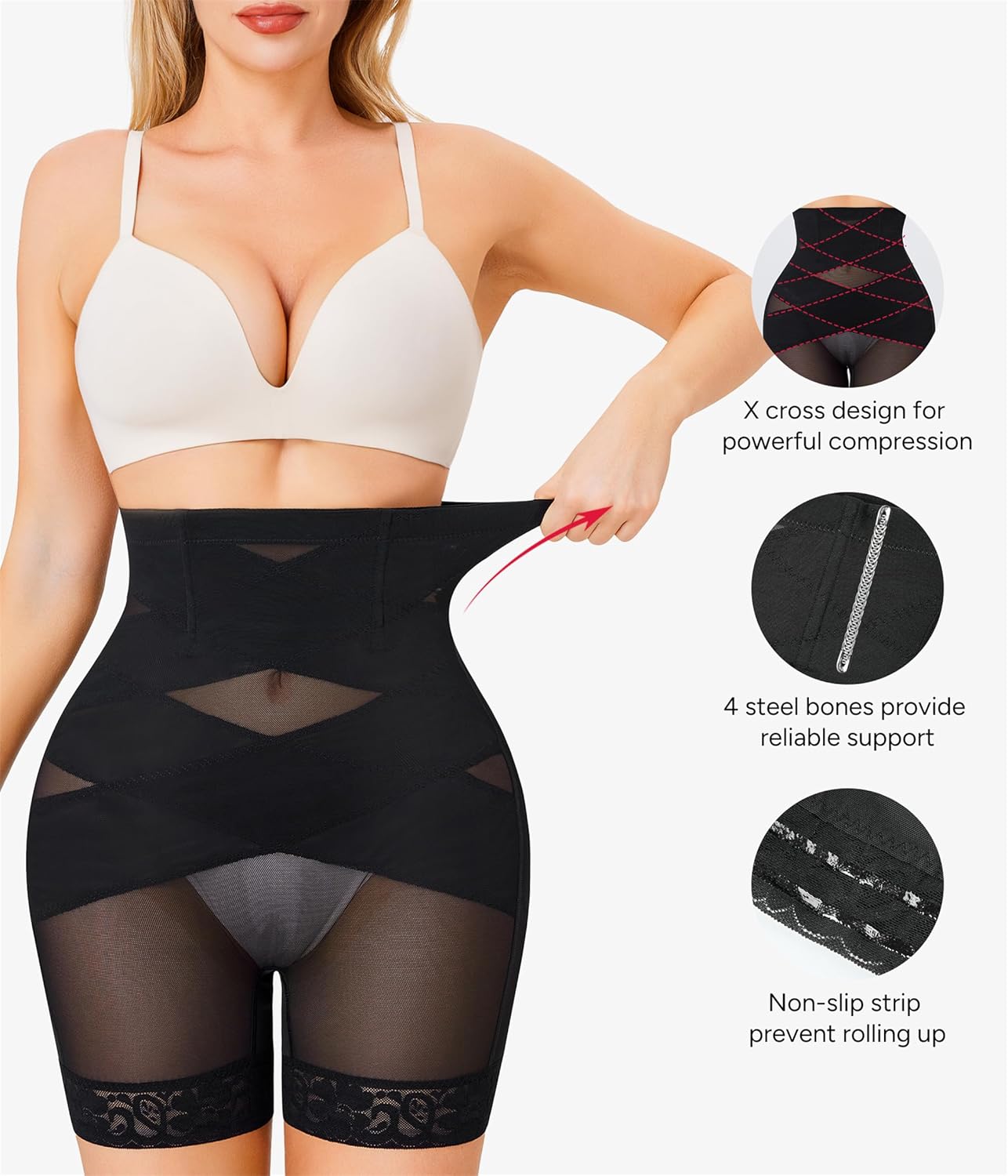Non-Roll Waistband: Equipped with silicone grips and flexible boning to stay in place