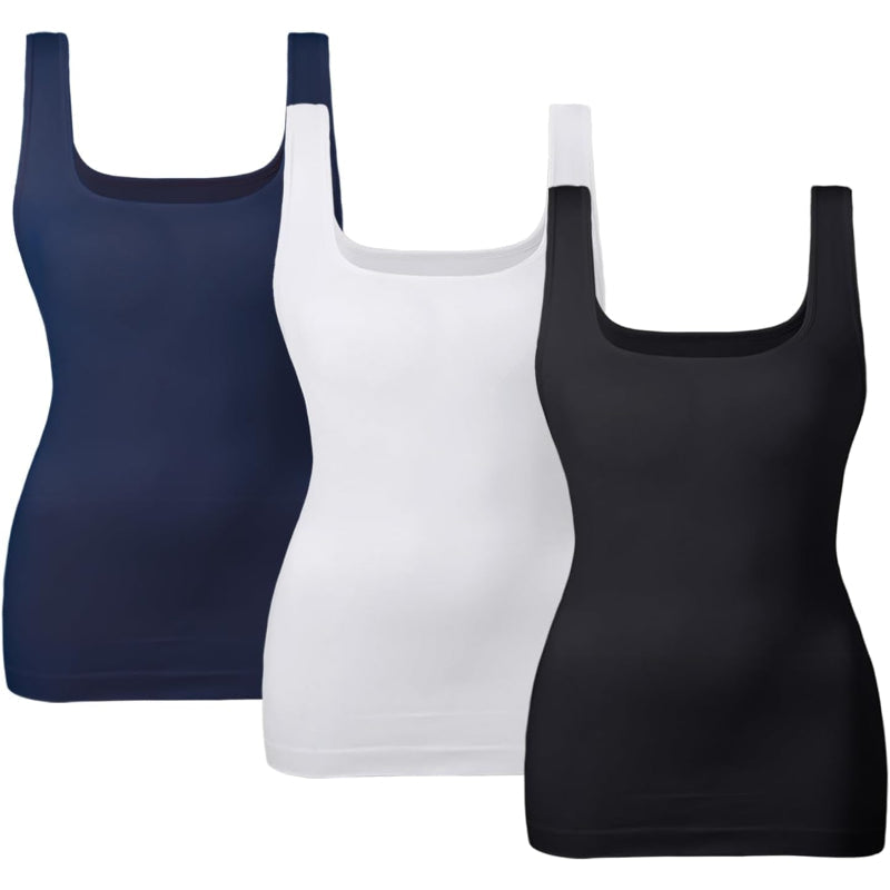 Enhance your daily wear with the tank top designed to provide seamless shaping, gentle compression, and light back support. This pack of 3 shaping tops offers value and versatility in a high-performance foundation garment. Whether worn under blouses or as a standalone top, each compression tank top helps you maintain a smooth silhouette with ease.
