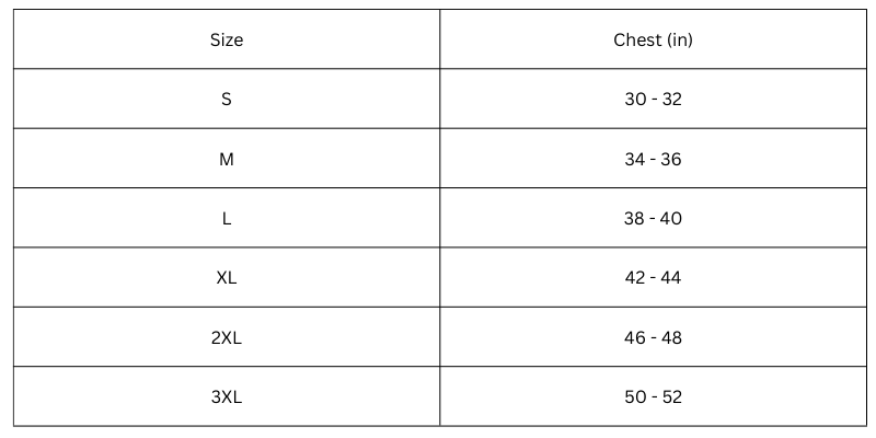 Size Chart (inches):