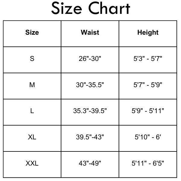 Size Chart (inches):