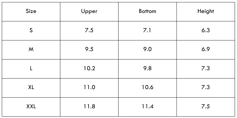 Size Chart (inches):