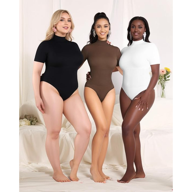 This mock turtleneck shapewear is designed with a structured neckline that adds an elegant touch to your outfit. The turtleneck provides a clean, polished look, making it a versatile option for layering. Whether you’re dressing for work, casual outings, or a night out, this bodysuit can be styled in various ways.